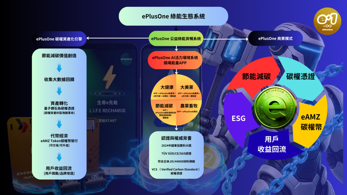 ePlusOne 打造全球唯一以 AI 撓場能量 × 綠能設備 × 量子水 × 區塊鏈碳權
